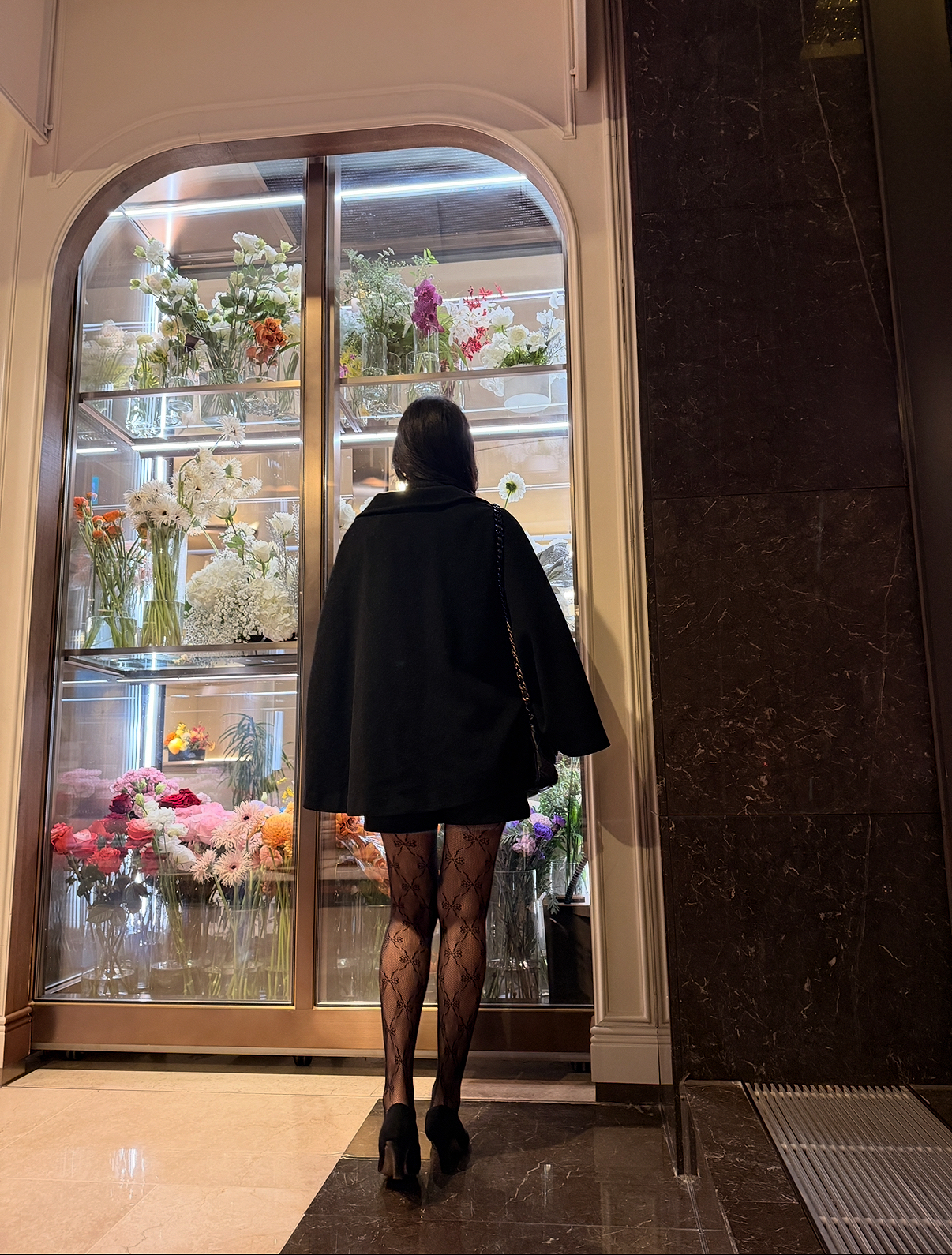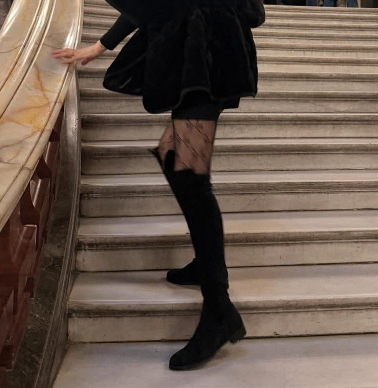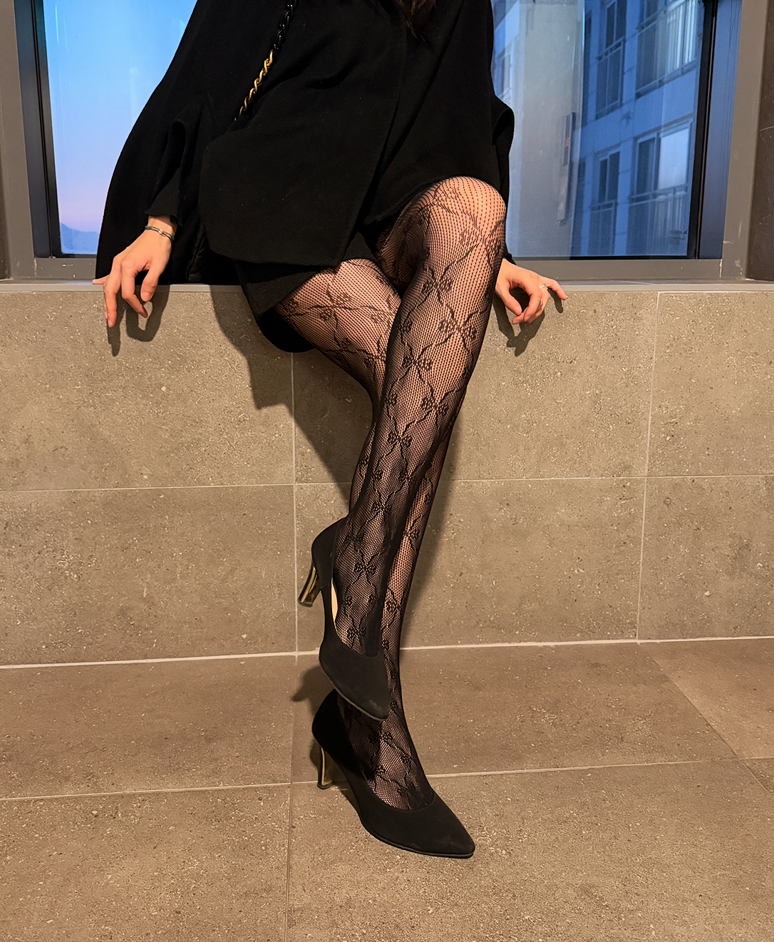Delicate mesh, drawn with intention. 의도적으로 설계된 패턴이 다리의 라인을 정제되게 강조합니다.
